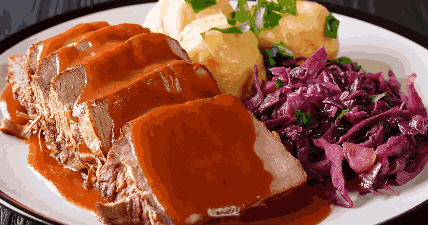 Sauerbraten, Almanya’nın en geleneksel et yemeklerinden birisidir. Genellikle sığır eti, sirke, kırmızı şarap, soğan ve baharatlarla birkaç gün marine edilerek hazırlanmaktadır. Bu uzun marine süreci, ete hem yumuşaklık hem de hafif ekşi bir tat kazandırmaktadır. Yavaşça pişirilen et, genellikle patates püresi, haşlanmış patates veya ekmek köftesi (Knödel) ile servis edilmektedir.